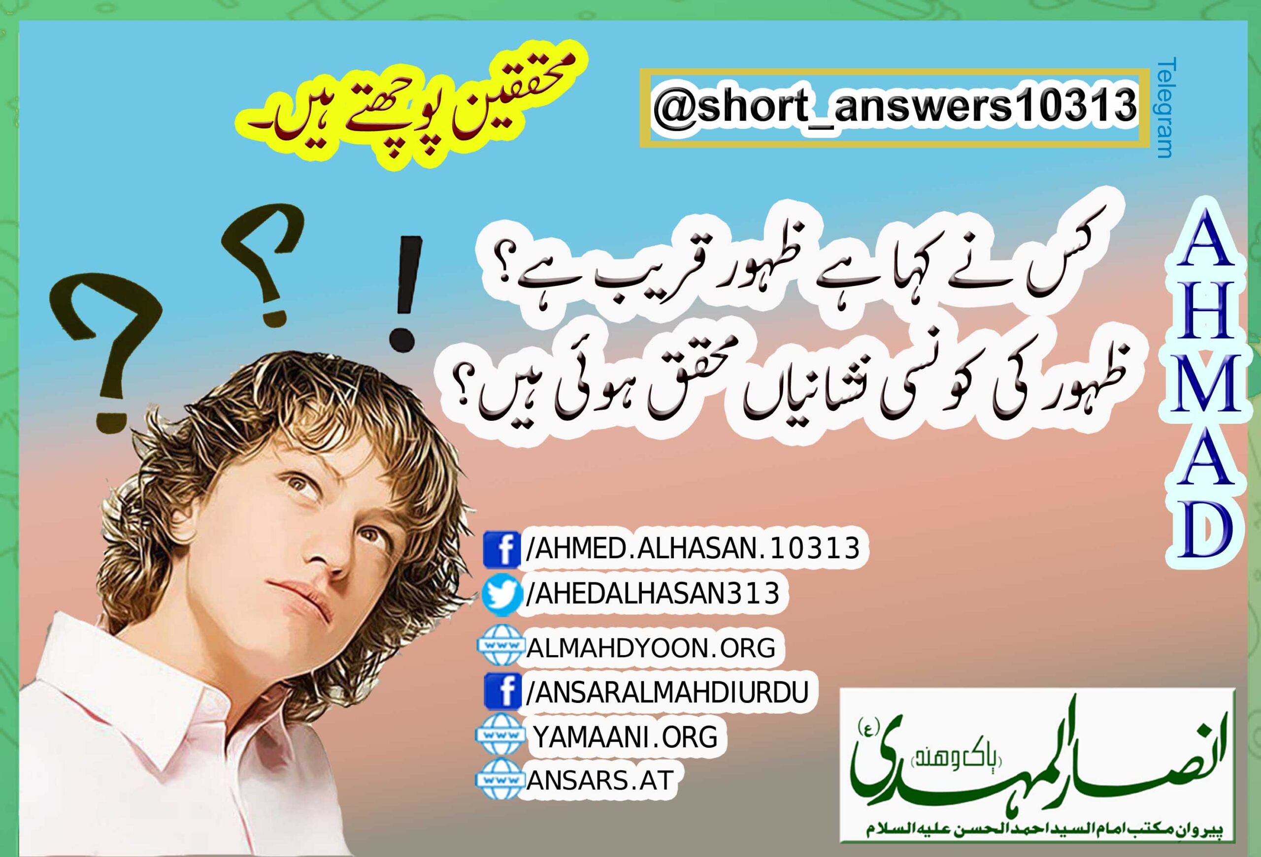 4.کس نے کہا ہے ظهور قریب ہے؟ ظهور کی کونسی نشانیاں محقق ہوئی ہیں؟