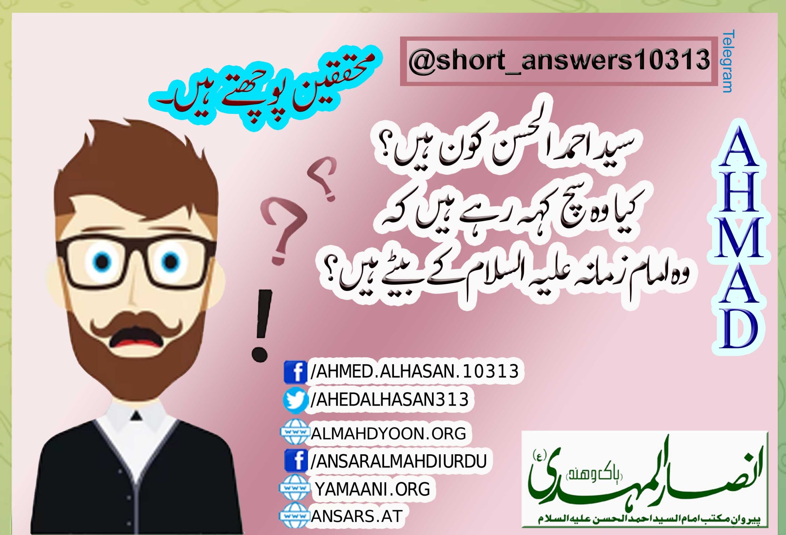 درجنون دلیلیں اور نشانیاں مثلاً معجزات اور استخارے اور … امام مہدی علیہ السلام کے بیٹے اور سفیر، سید احمد الحسن کی تایید کرتے ہیں. ![]()