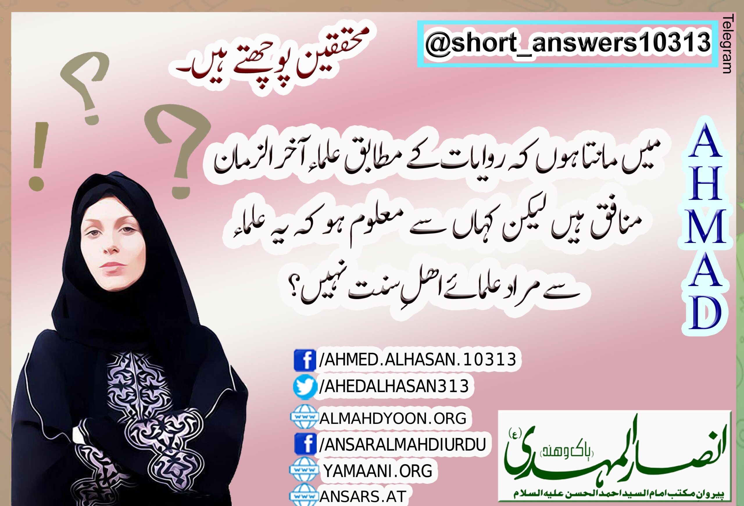 24-2- میں مانتا ہوں کہ روایات کے مطابق علماء آخر الزمان منافق ہیں لیکن کہاں سے معلوم ہو کہ یہ علماء سے مراد علمائے اھلِ سنت نہیں؟