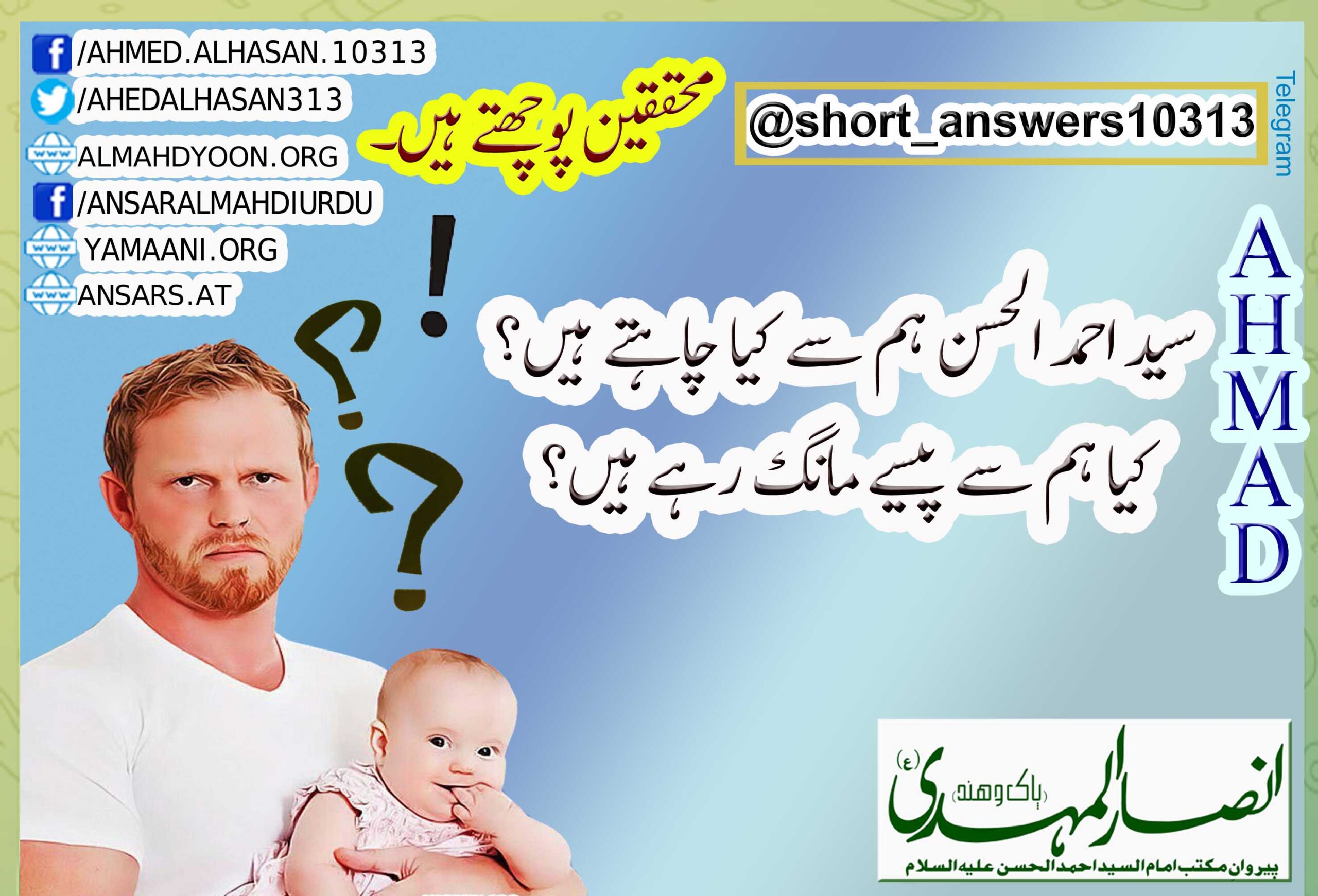 3- سید احمد الحسن ہم سے کیا چاهتے ہیں؟ کیا ہم سے پیسے مانگ رہے ہیں؟