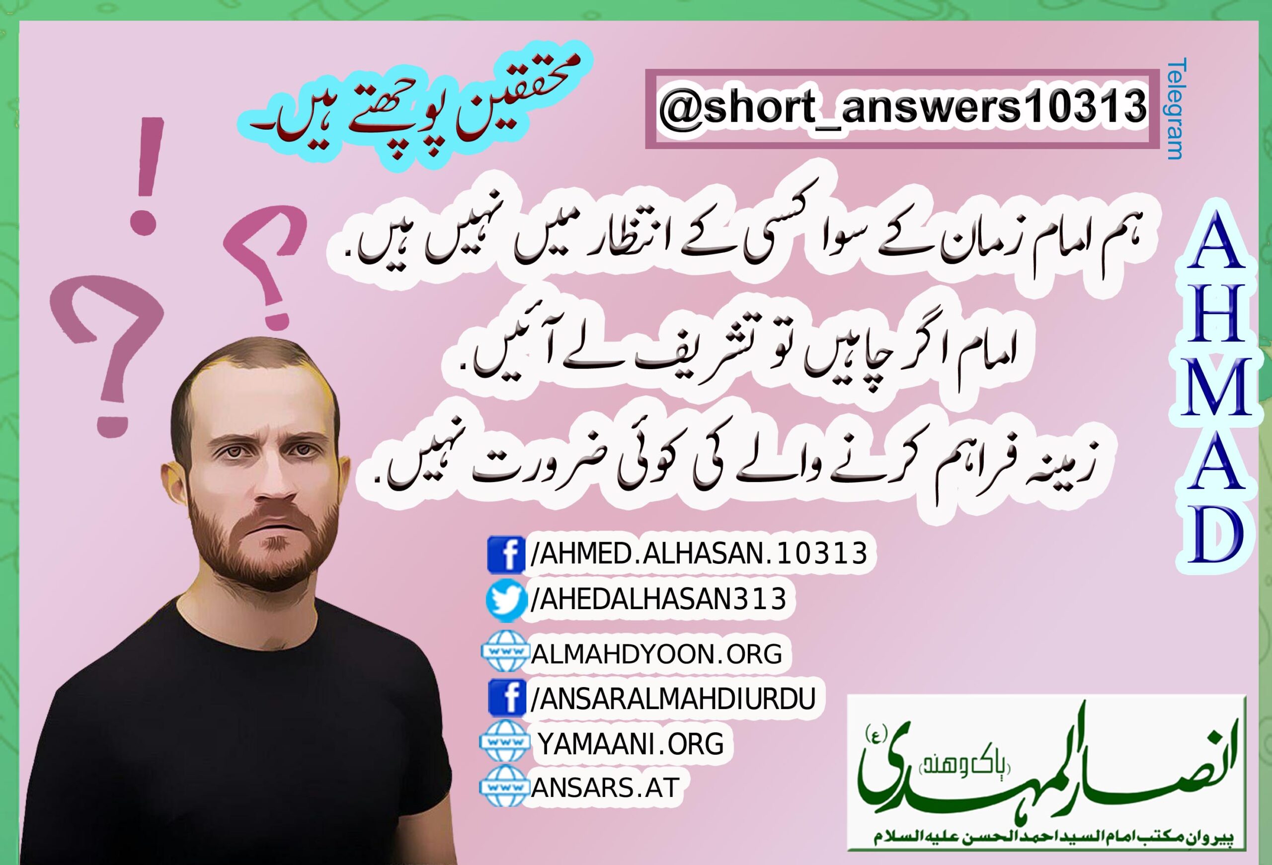 5. ہم امام زمان کے سوا کسی کے انتظار میں نہیں ہیں. امام اگر چاہیں تو تشریف لے آئیں. زمینه فراہم کرنے والے کی کوئی ضرورت نہیں.