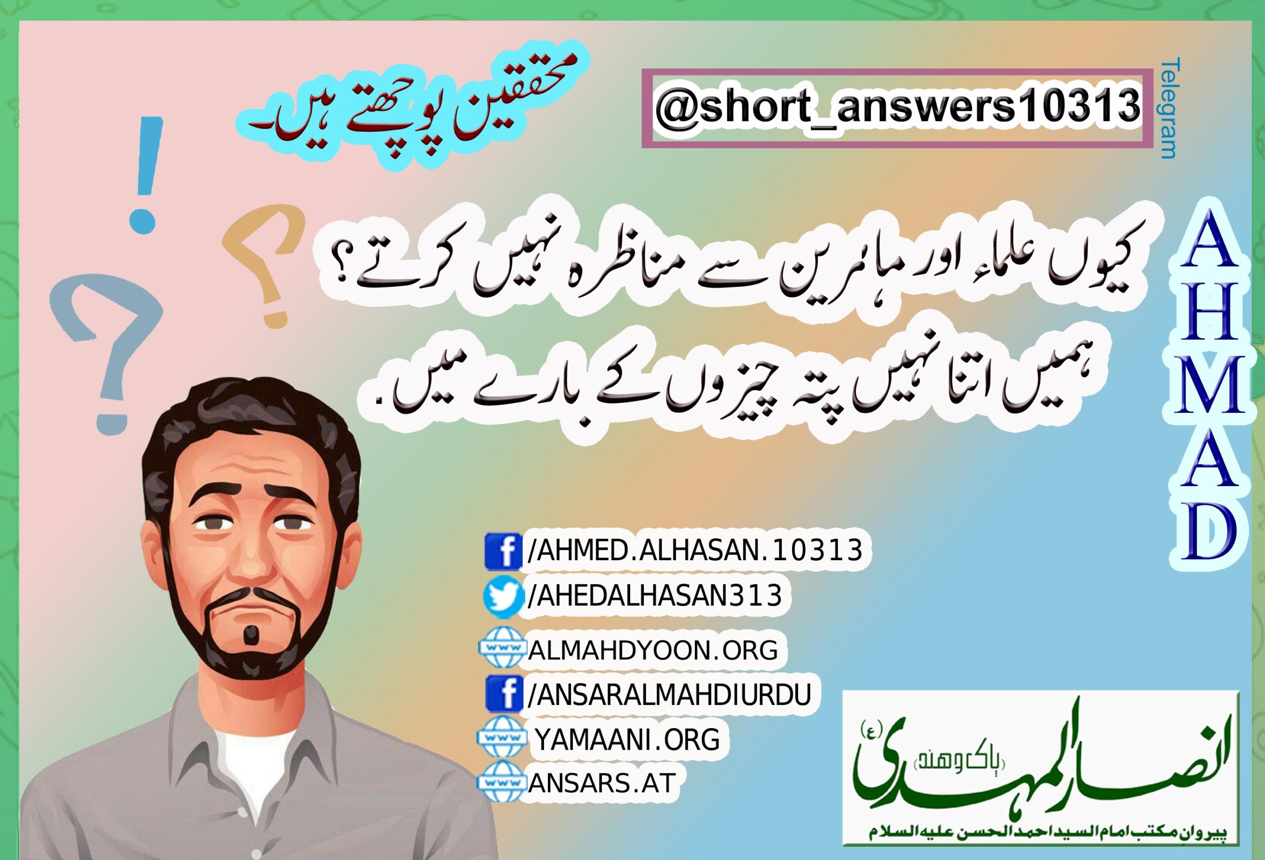 6- کیوں علماء اور ماہرین سے مناظره نہیں کرتے؟ ہمیں اتنا نہیں پتہ چیزوں کے بارے میں.