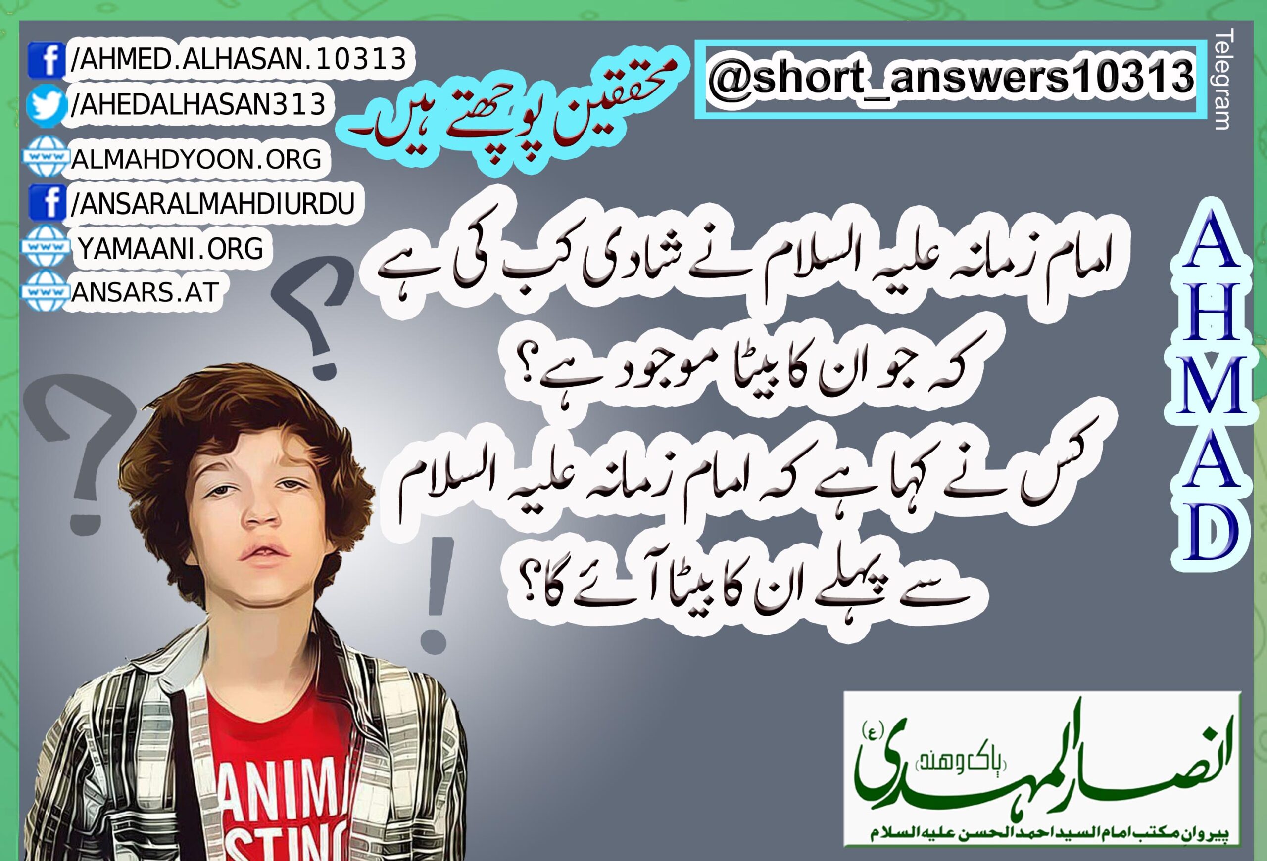 7- امام زمانہ علیہ السلام نے شادی کب کی ہے کہ جو ان کا بیٹا موجود ہے؟ کس نے کہا ہے کہ امام زمانہ علیہ السلام سے پہلے ان کا بیٹا آئے گا؟
